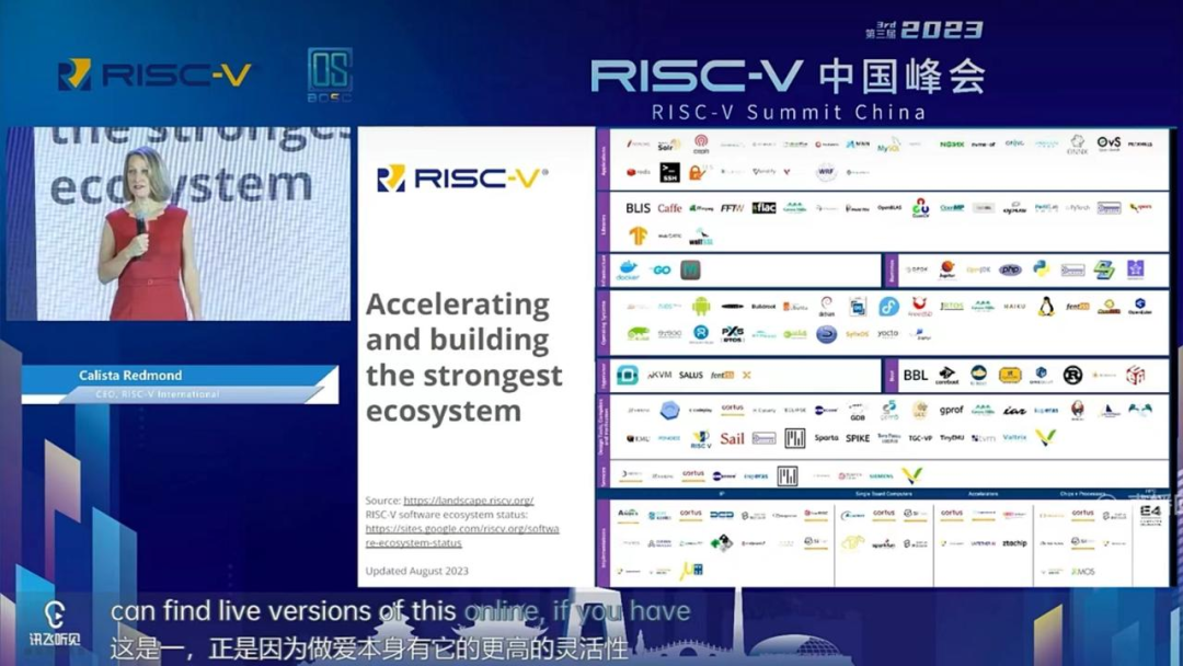 在首日的演讲上, RISC-V国际基金会CEO Calista Redmond介绍了RISC-V的生态进展。目前,市场上已经有超过100亿颗RISC-V芯片,软件生态也取得了不俗的进展。
