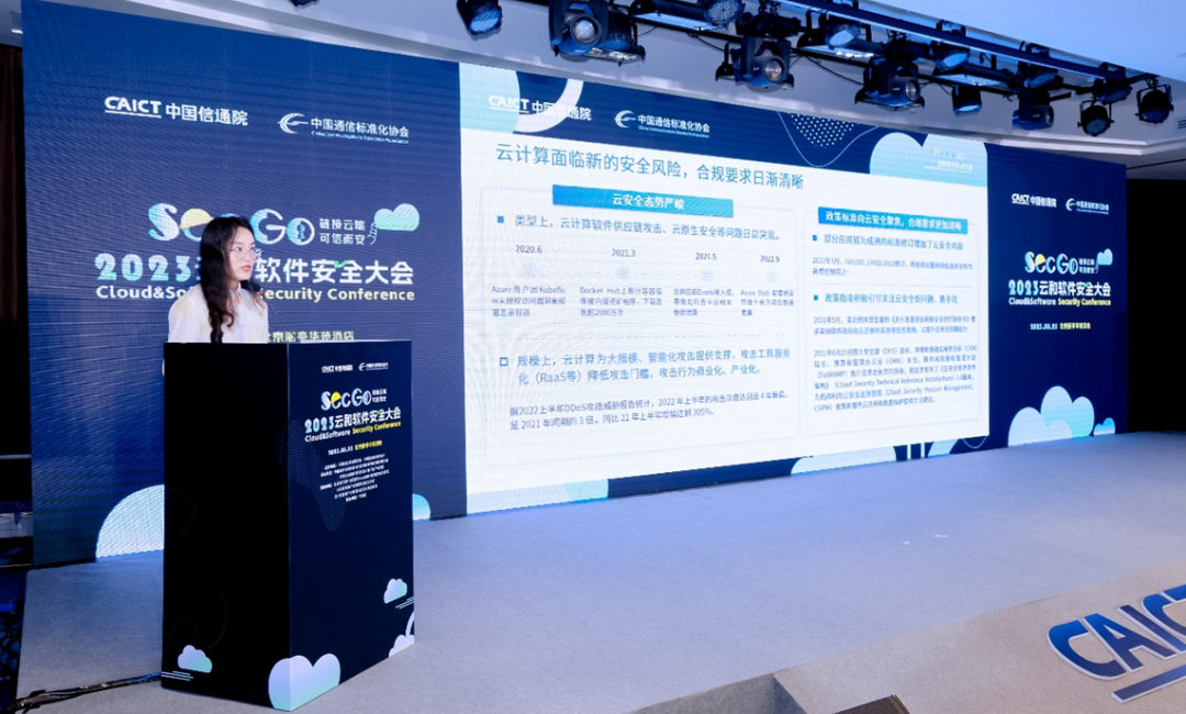 2023年8月25日,由中国信息通信研究院(以下简称“中国信通院”)和中国通信标准化协会联合主办的“2023 SecGo云和软件安全大会”在北京召开。大会以“链接云端 可信而安”为主题,旨在推动云和软件安全产业发展、新技术应用和生态建设。中国通信标准化协会副理事长兼秘书长代晓慧、中国信通院云计算与大数据研究所所长何宝宏出席会议并发表致辞。