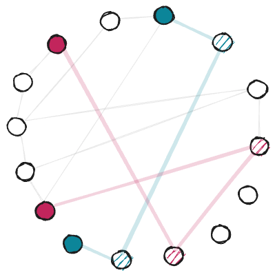 分层可导航小世界(HNSW)图是构建向量索引中最受欢迎的算法之一 - 在撰写本文时,几乎每个数据库供应商都将其作为首选选项。它也是最直观的算法之一,强烈建议阅读介绍它的原始论文。 在高层次上,HNSW基于小世界图现象构建,该现象表明尽管图中的大多数节点不是彼此的邻居,但给定节点的邻居很可能是彼此的邻居,无论图的大小如何。基本上,图中的任何节点都可以通过相对较少的步骤从其他节点到达。在下面的示例中,实心填充的蓝色和红色节点可以在仅经过3个跳跃的情况下相互到达,尽管它们在图中可能被认为是相距较远的。