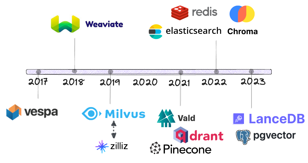 有趣的是,Pinecone和LanceDB的底层存储格式都是使用Rust从头开始重写的,尽管它们最初是用C++编写的。显然,越来越多的数据库社区正在拥抱Rust 💪!时间线