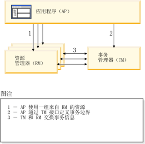 应用程序(AP)定义事务边界(开始结束),并定义构成事务的特定于应用程序的操作。