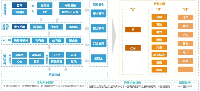 信创从产业链角度,不仅仅涉及底层芯片、操作系统和数据库,还涉及到上层办公软件、OA、ERP等应用软件。如果从大信创角度,还有网络安全、银行IT、工业软件等领域。