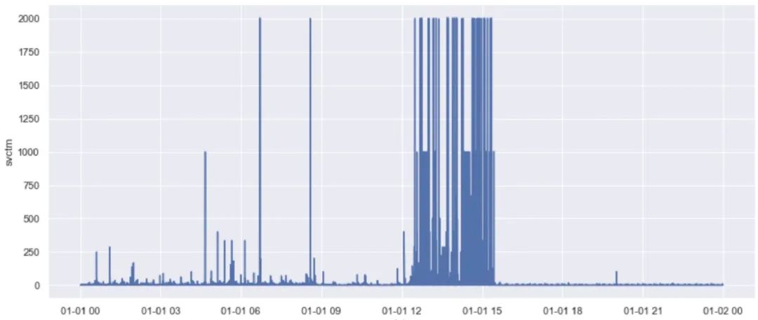 例如上图所示为实际慢盘样本点的svctm指标变化(svctm指io平均服务时间,一般值越高硬盘状态越差),当日约13点发现任务堵塞,而svctm指标在12点-15点间值明显异常波动,虽然短时特征较为明显,但前期特征不足。因此难以实现较大时间提前量的预防性更换。