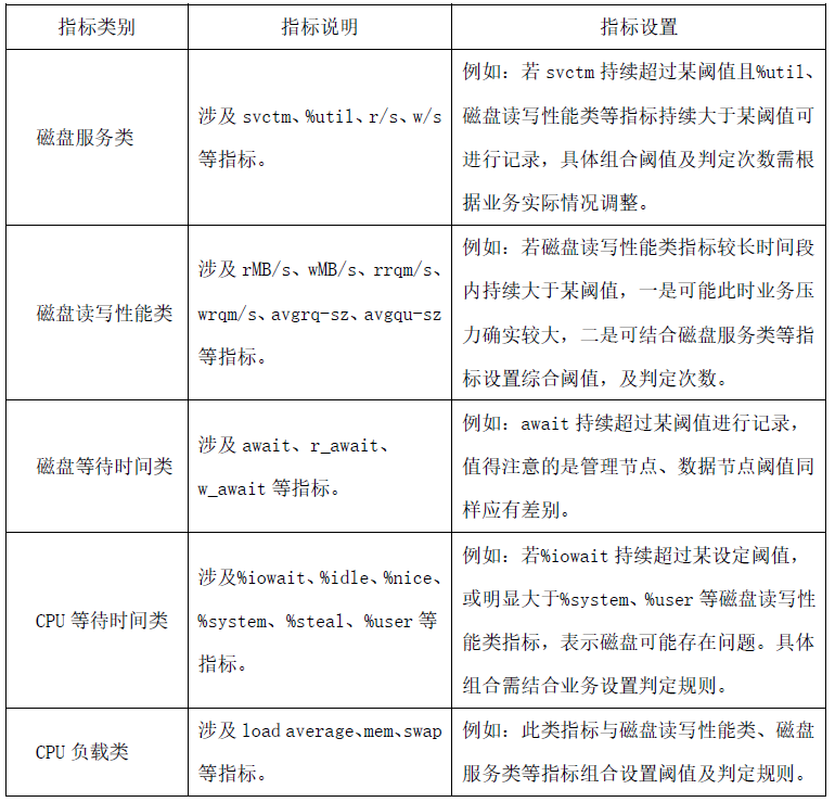 通过调整,根据预警结果将疑似问题硬盘打上标记,我们基本改变了被动局面,具备了预防性更换的能力。下表给出部分硬件侧指标参考。