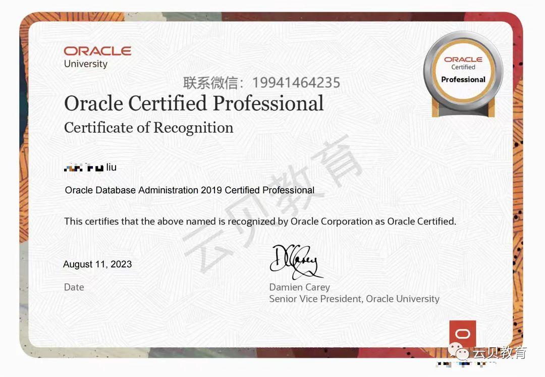我花了大约两个半月才考出ocp证书。由于家庭原因和公司出差,我耽误了一些时间。但是,我非常感谢云贝老师在学习路上的陪伴,使我能够成功地获得这个证书。也希望我的备考方法可以帮助大家,最后祝愿其他还没考oracle ocp的小伙伴都能取得一个不错的成绩。