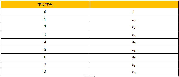 假设a1、a2、a3、……、a9代表重要性排序后的9个指标,以最重要的a1为锚点,各个指 标和a1的重要性比较关系可以用公式表示为: