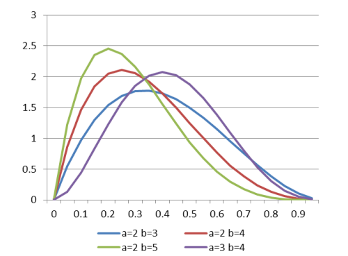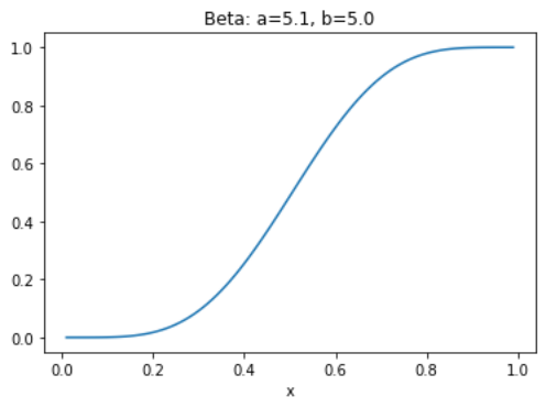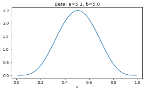 以α=5.1,β=5为例,Beta分布曲线为: