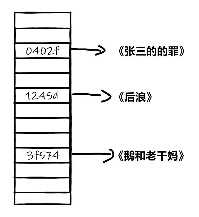 哈希表,实际上就是键为通过哈希函数获取的唯一的哈希值,值为对应数据的表的结构。如果想从哈希表中寻找一本书,只需要将书名输入到哈希函数中,直接通过于哈希表中的键匹配,就可以获得书对应的位置了。哈希表的优点就在于可以通过键直接的匹配到想要的值,但哈希表无法记录数据输入的顺序,所以排序效率不高。