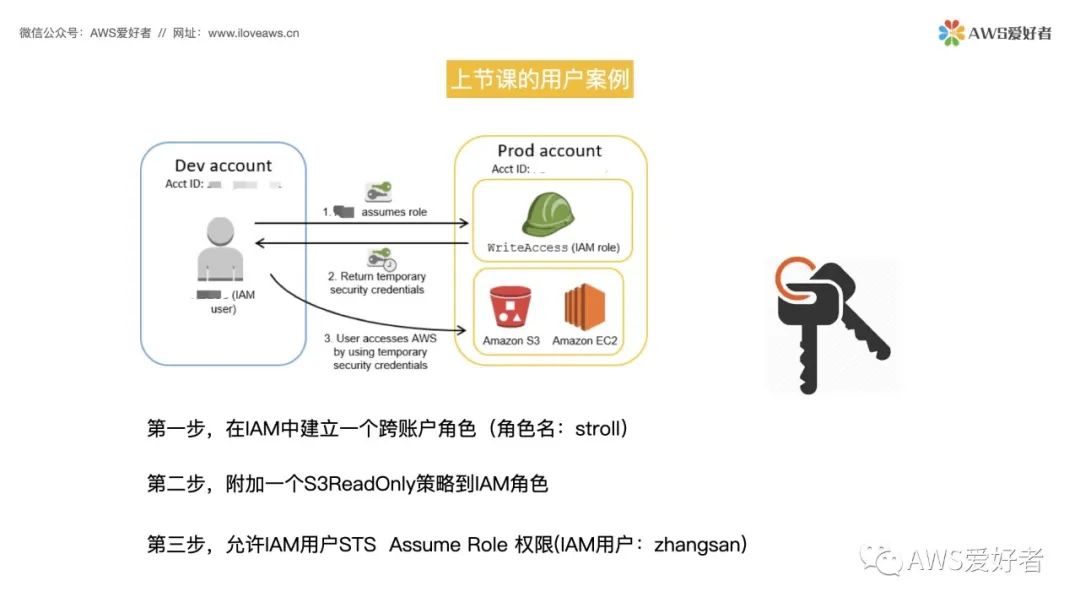 Hello大家好,欢迎来到《AWS解决方案架构师认证 Professional(SAP)中文视频培训课程》,我们今天的课程还是AWS STS服务的内容,AWS STS – 获取临时凭证的自动化执行。我们上节课讲了一个用户案例,通过将允许访问S3的权限策略附加到IAM角色,开发人员通过sts:Assumerole的方式获得该角色的临时访问凭证,然后使用此临时访问凭证访问AWS S3,我们也说了这种方式是AWS推荐的最佳实践,而不是为用户直接分配永久性的凭证。看了课程的同学可能会有一个疑问,这种访问AWS资源的方式,当获取角色临时凭证后,需要手动将access key、secret key以及会话token复制到aws 的 credentials文件。而默认情况下临时凭证的有效期是一个小时,也就是说如果开发人员需要定期访问aws资源,就需要在凭证过期后再次运行sts assume-role命令,然后在将获取的新的临时凭证复制到aws 的 credentials文件中,这显然是一个低效的方式,而作为解决方案架构师来讲,如果您提供了这种方案给开发人员,开发人员恐怕不会遵循这个办法。那怎么解决这个问题呢?AWS提供了一个自动化上述过程的一个方法,我们接下来来看一下如何实现。是这样的,如果您调试是位于Amazon EC2实例上,而这台EC2附加了IAM角色,则AWS CLI将自动为您检索凭证,您不需要配置任何凭据。指定AWS CLI承担角色的配置方法