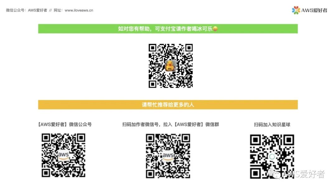 如果您想加入「AWS爱好者」微信群和其他同学交流,请:chenmoemo,后拉入「AWS爱好者」微信群。