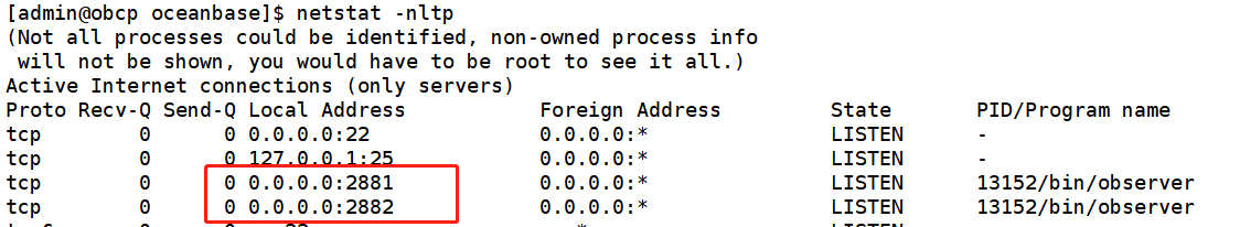 再确认下端口:[admin@obcp obproxy-4.0.0]$ netstat -ntlp |grep obproxy