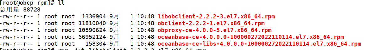 drwxr-xr-x 3 admin admin 17 9月 1 10:51 obproxy-4.0.0 # 之前装的rpm包,会在这里创建文件夹