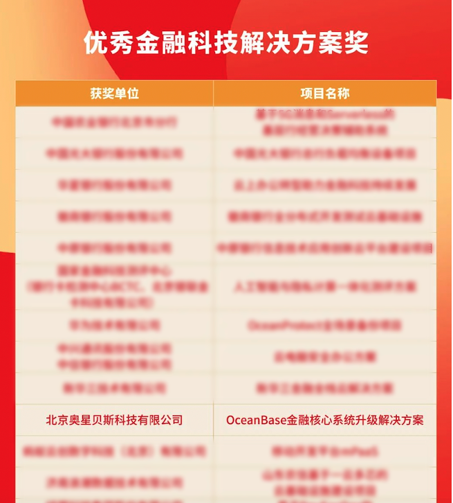 IDC 中国 FinTech 50 ”榜单。OceanBase