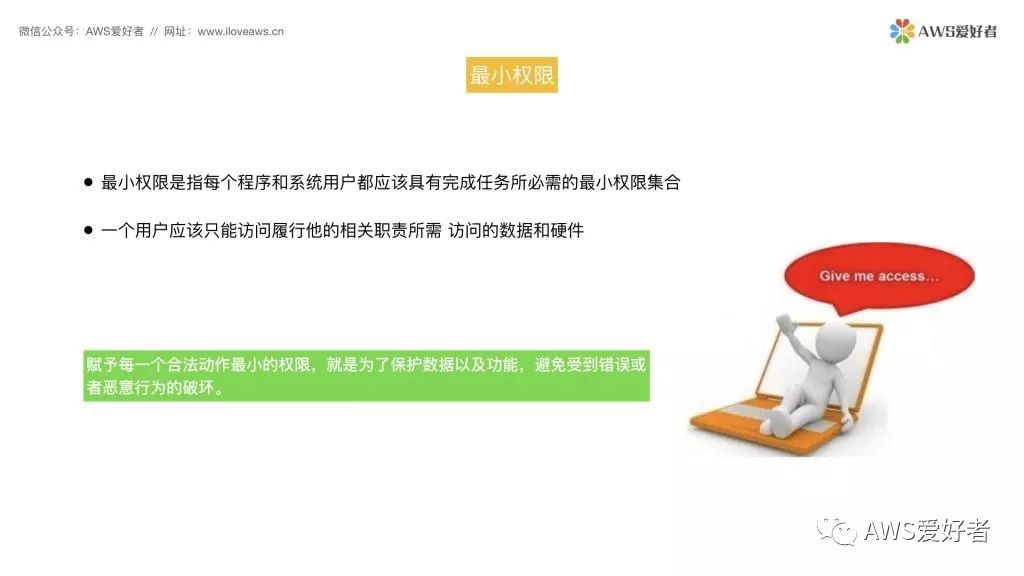 Hello大家好,欢迎回来,我们今天的课程内容是 最小权限原则,对于解决方案架构师或者安全工程师来讲,在分配访问权限时这是需要遵循的一个非常重要的原则。