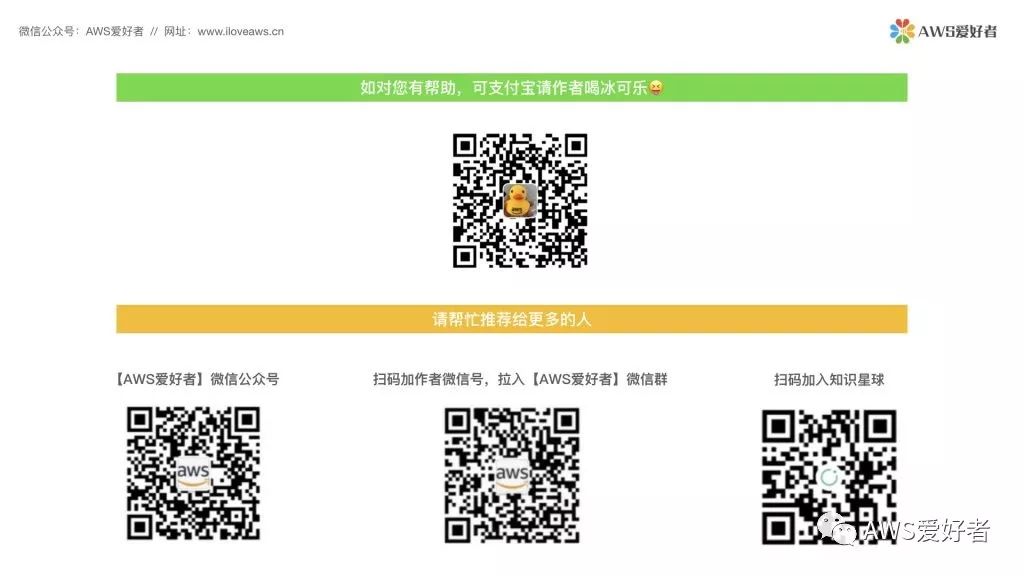 可以通过扫码加入【AWS爱好者】微信公众号,查看原创的AWS知识点相关文章
