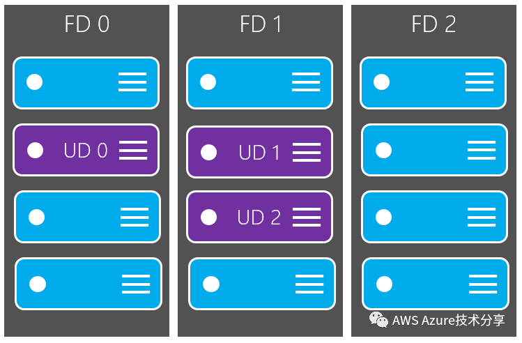 Azure 平台为可用性集中的每个虚拟机分配一个更新域和一个容错域。
