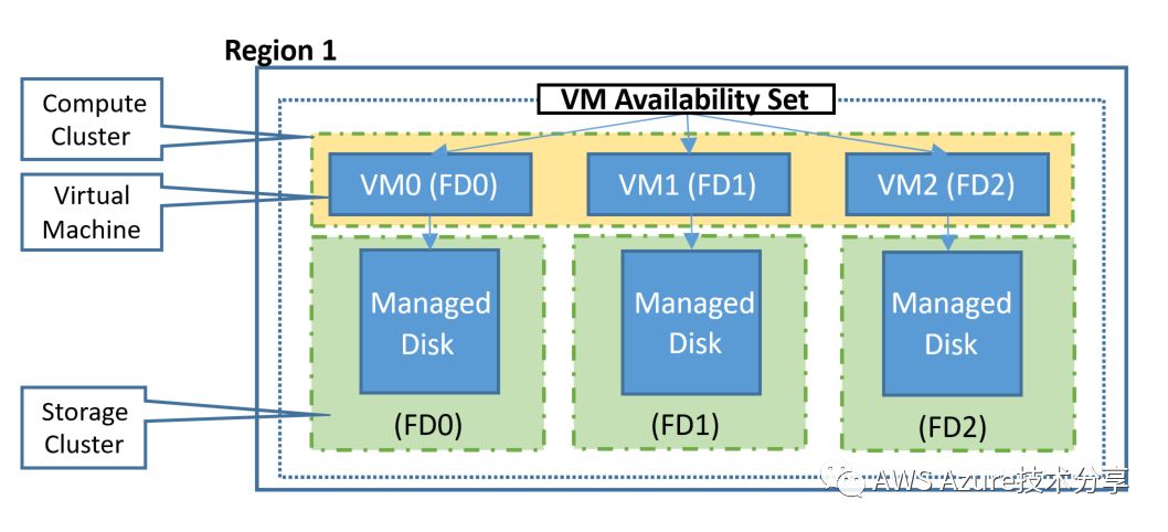 托管磁盘为可用性集提供了更佳的可靠性。 为此,会自动将磁盘放置在不同的存储容错域(存储群集)中,并使它们与 VM 容错域一致。 如果某个存储容错域因硬件或软件故障而失败,则只有其磁盘在该存储容错域上的 VM 实例会失败。