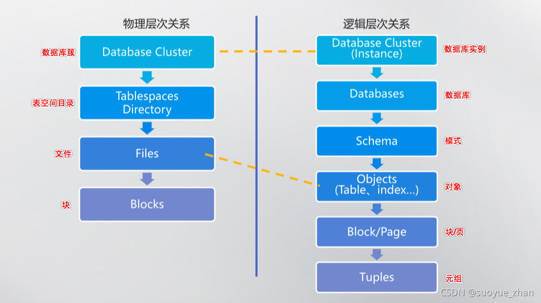 Database Cluster --》Tablespaces --》Files --》 Blocks