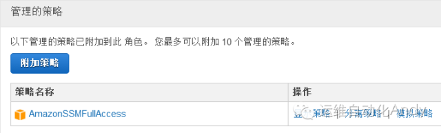 备注:权限的集合,启动EC2时候可以使实例自动具有角色具有的权限,无需配置AWS Cli),名字testssm.