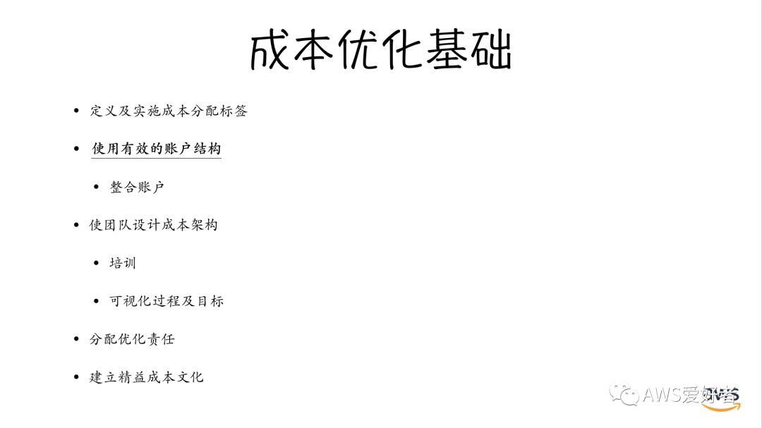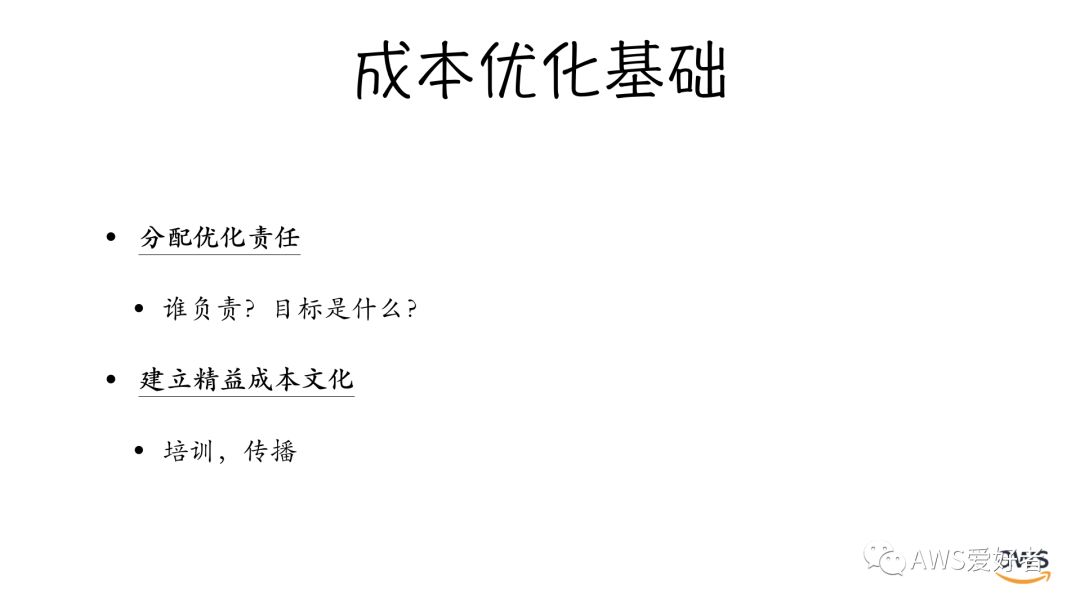 匹配的这些知识需要靠相关的培训来获得,使团队可以熟悉成本优化,AWS成本相关的服务,建立主动优化的意识等等。