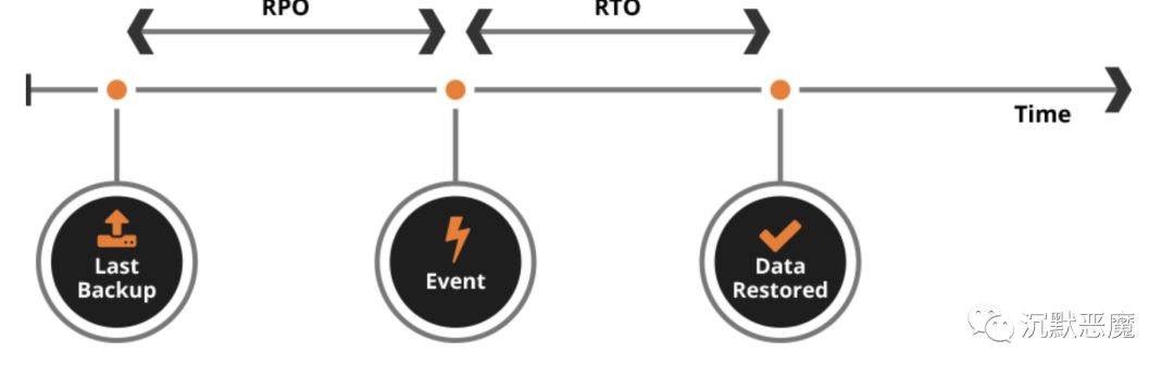 恢复点目标(RPO)—可接受的数据丢失量;如灾难发生在下午14点且RPO是2小时,则业务丢失数据需要在2小时内(12-14点之间)