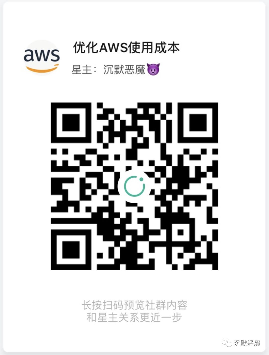 如果你希望在云时代掌握核心竞争力,如果您对AWS成本相关或者AWS技术方面有兴趣,请扫码加入我们吧: