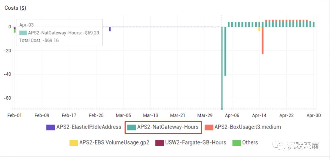 1. 先看了下4月的账单,发现账单的大部分的费用是NAT网关造成的,共1972小时,NAT网关是按照小时付费,不同区域价格不同,此账单区域每小时0.059美元,故116.35美金。(如图)