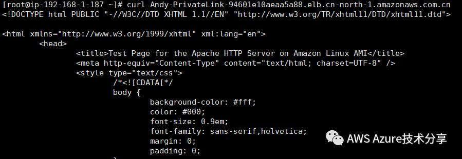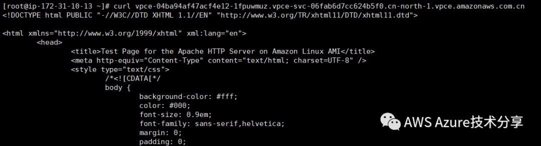 登陆VPC-A(访问方)的10.31.2.87,访问VPC-A的终端节点的DNS名称,观察是否可以正常访问。