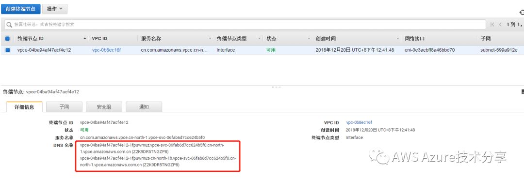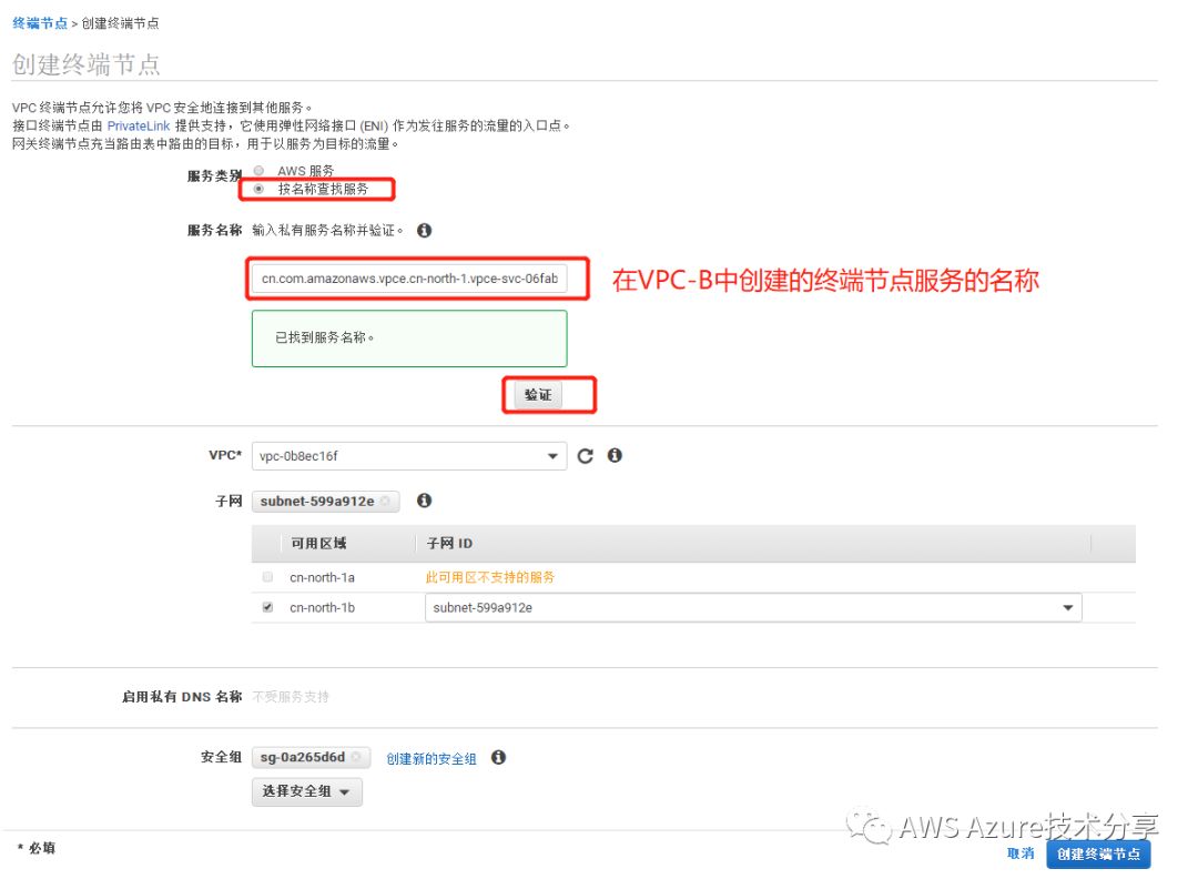 请注意,这个过程是在“终端节点”而不是在“终端节点服务”中进行的。