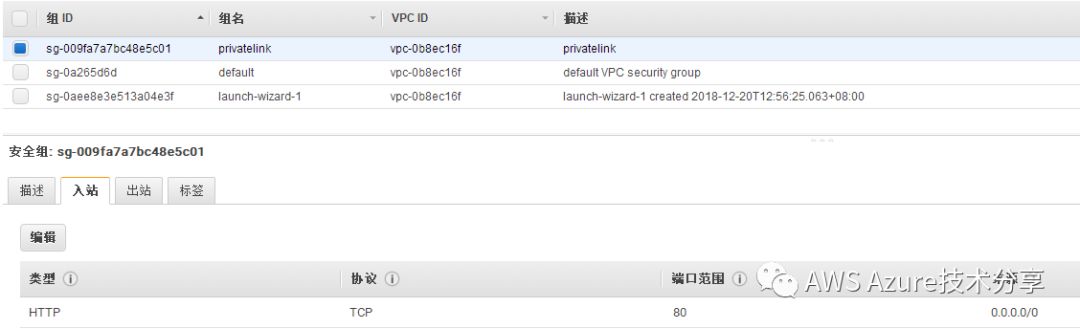 修改终端节点的安全组,打开80端口,否则无法访问VPC_B的Private link
