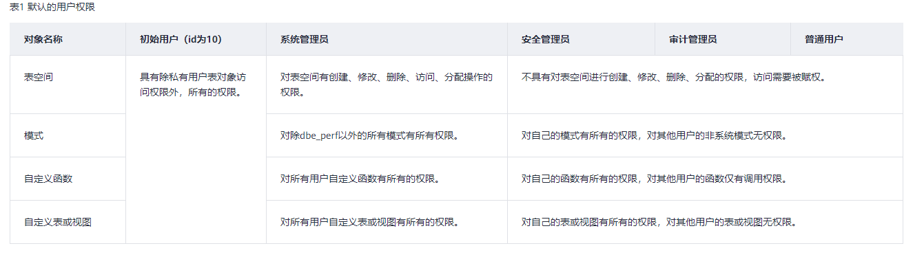 默认权限机制和管理员两节的描述基于的是集群创建之初的默认情况。从前面的介绍可以看出,默认情况下拥有SYSADMIN属性的系统管理员,具备系统最高权限。