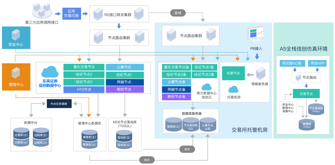 2022年,东吴证券进入核心交易系统信创改造的全面攻坚阶段,先后上线了集中交易、融资融券和期权等信创节点,并完成了节点客户的批量迁移和入驻,促使全部交易功能在信创生产环境落地。与此同时,代表了东吴证券最前沿核心交易信创改造技术的A5全栈信创仿真环境成功上线运行。该环境基于ARM架构CPU服务器、国产数据库TDSQL、国产交换机等硬件搭建而成,覆盖了A5核心交易系统功能点,用于支持交易所测试、升级测试等日常运维重要环节,为东吴生产信创系统的全面、平稳上线做好试金石。至此,东吴证券完成了A5核心交易系统的全部信创改造技术点,形成了实盘与仿真相结合,覆盖全业务、贯穿交易全链路、多条技术路径并进的新格局。