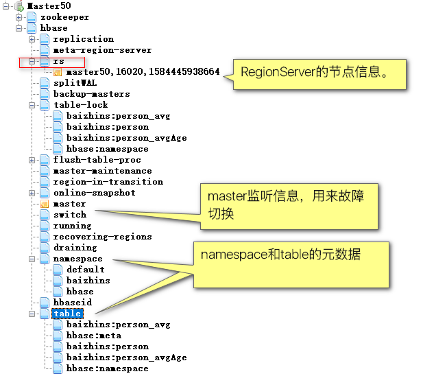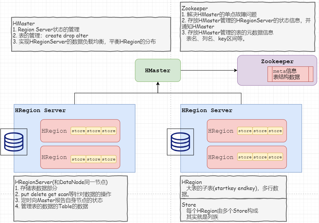 2. 存放HMaster管理的HRegionServer的状态信息,并通知HMaster