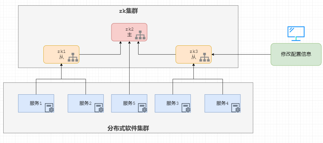 同步集群的配置信息(文件系统) 监听服务器的上下线,同时可以做出反应。(监听器)