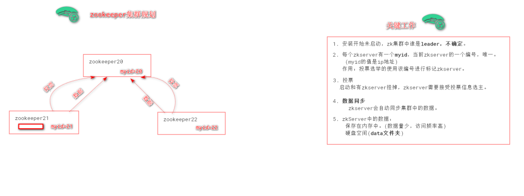 1主(Leader)多从(Follower),一旦故障就能立刻选出新的主机,继续提供服务。 自身稳定性No单点故障集群中只要有半数以上zk节点存活,zk集群就能正常使用。 服务节点可靠性选主和操作,使用 投票机制