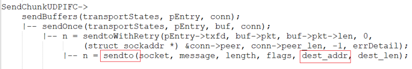 1)SendChunkUDPIFC函数最终调用sendto函数来发送