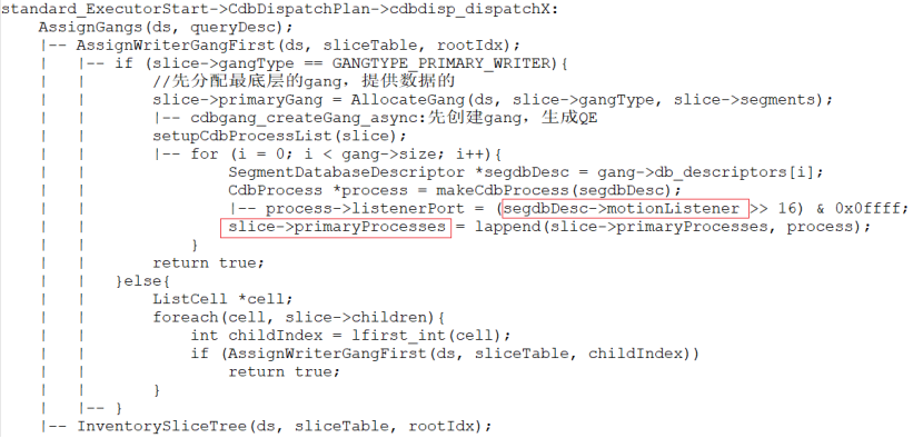 1)QD:分发执行计划时,根据motion切分slice,并创建gang,即生成QE进程