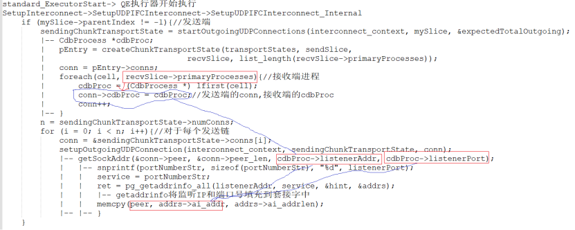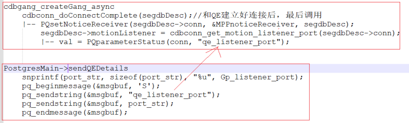 创建gang,和QE建立好连接后,QE进程会将QE的监听端口发给QD,从而让QD将QE的UDP监听端口保存到segdbDesc->motioListener中。