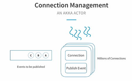 这样一来在LinkedIn的直播系统中,每个Actor的状态就是一个connection,行为就是一个publish event,它可以定义我们如何把event publish到长链接的另外一端(用户端)