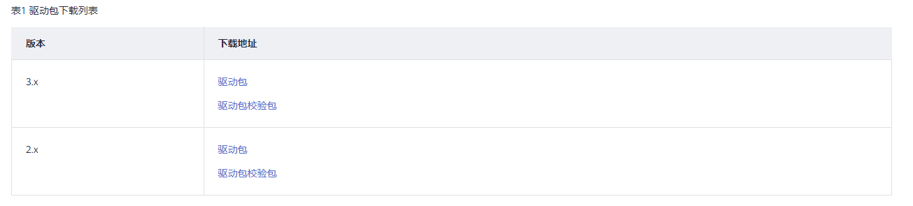 根据不同版本的实例,下载不同版本的发布包,如表1所示。