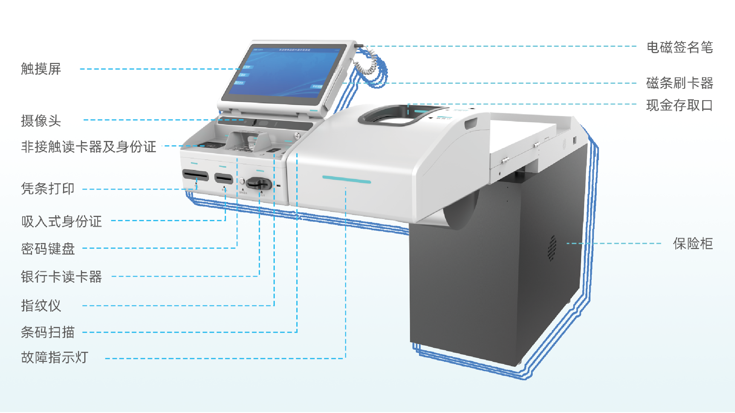 在银行网点的智能化转型中,高柜改造是个棘手问题。一方面,柜员日常工作繁重,高峰时段网点人手不足,导致客户等待办理业务时间较长;另一方面,高柜防护玻璃(最后三厘米)妨碍了柜员与客户的有效交流,用户体验较差。此外,高柜占用的场地空间和每日入库押钞成本也导致网点资源无法被充分、有效利用。