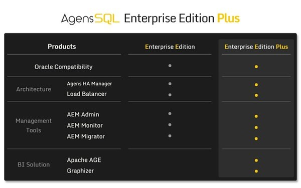 AgensSQL 包含两种类型:Enterprise 和 Enterprise Plus。