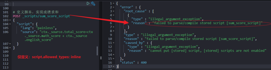 如果仅设置支持:inline,再创建 stored 类型脚本就会报错。