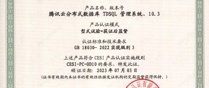 优秀贯标企业!腾讯云数据库TDSQL首批通过强制性国标GB18030-2022最高级别认证