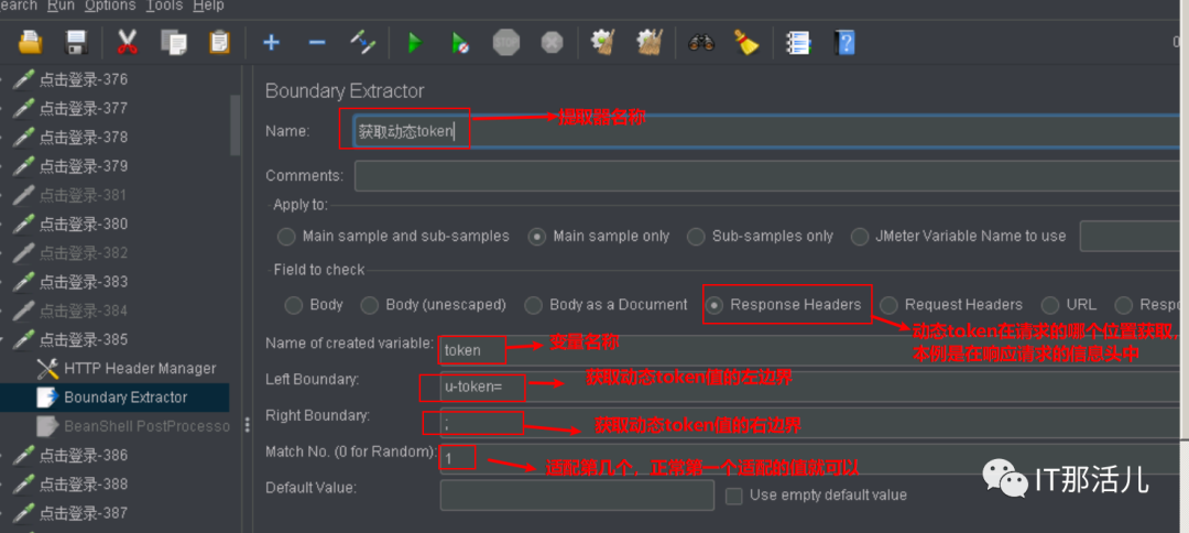 step1 添加Boundary Extractor (边界值提取器),获取动态token: