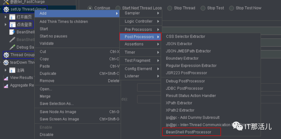 添加Beanshell PostProcessor: