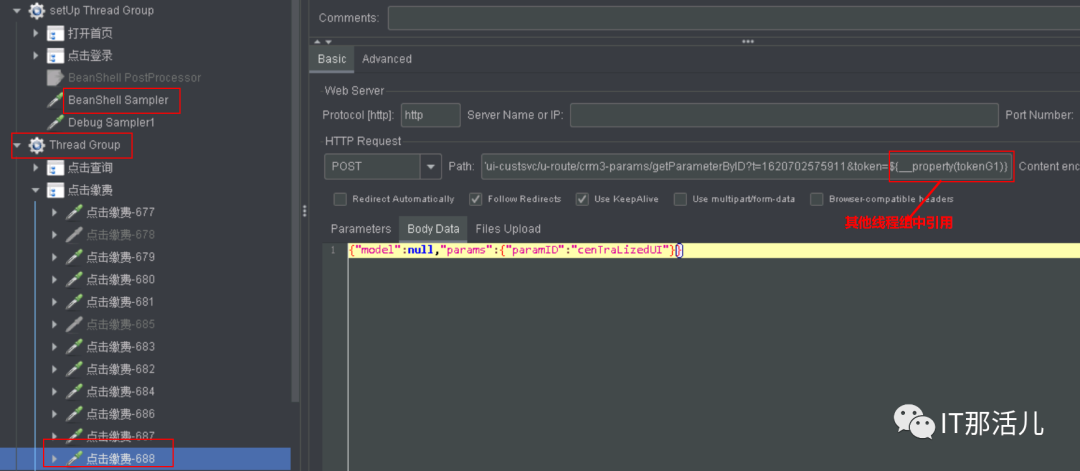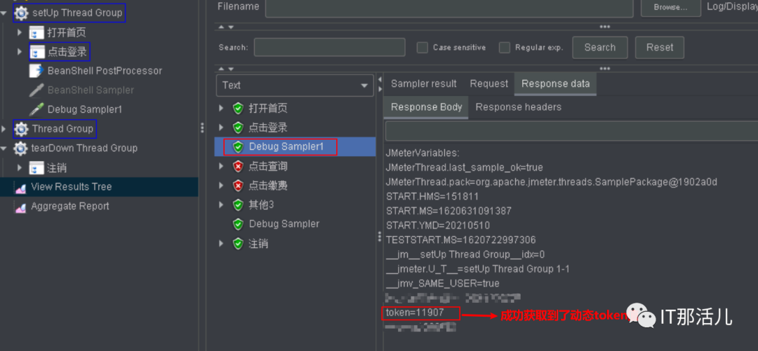 本例将登陆中获取的动态token,转换为全局变量,在其他线程组内使用。