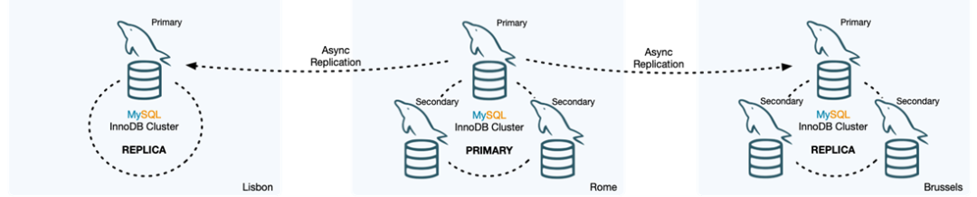 MySQL 8.x 的ClusterSet新功能提供跨数据中心的多个InnoDB集群的复制支持。能使复制通道的节点之间的自动故障转移自动化。ClusterSet 支持方便且易于使用,可以通过单个命令切换主集群。 以做到对称部署的灾难恢复处理。