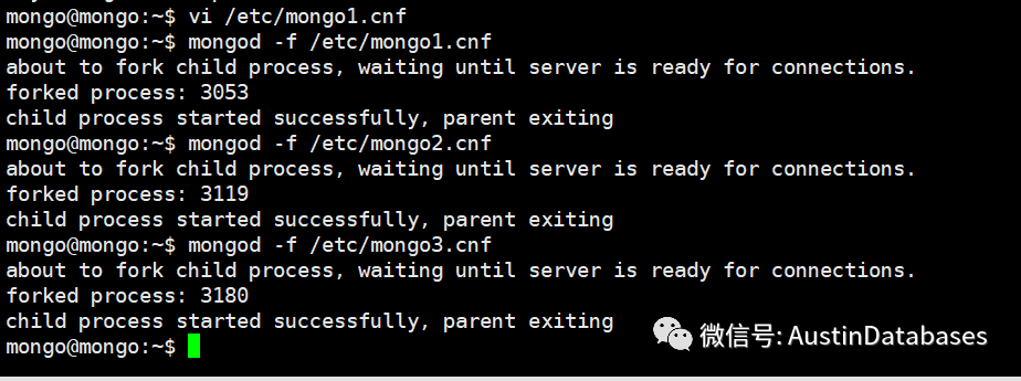在第一次搭建的情况下,请先去掉复制方面的配置,否则无法添加用户,在添加用户后,直接执行下方的命令,将3个节点标定为复制集,然后直接初始化,即可。