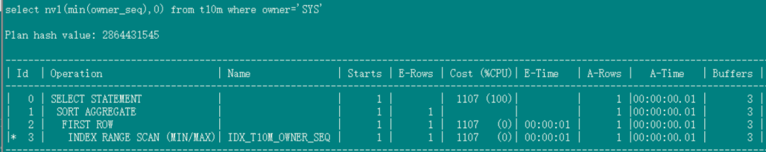 select nvl(min(owner_seq),0) from t10m where owner='SYS';